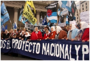 Miles de militantes de organizaciones políticas, sociales y sindicales, con la presencia en la Plaza de Julio Piumato del Consejo Directivo de la CGT y un mensaje de Hugo Yaski, Secretario Generla de la CTA de los Trabajadores desde Ginebra, Suiza, del Secretario de Medios de la Nación Juan Manuel Abal Medina, y de trabajadores de las oficinas del Centro de Buenos Aires que interrumpieron sus tareas por un rato acompañaron la Marcha de las Madres.